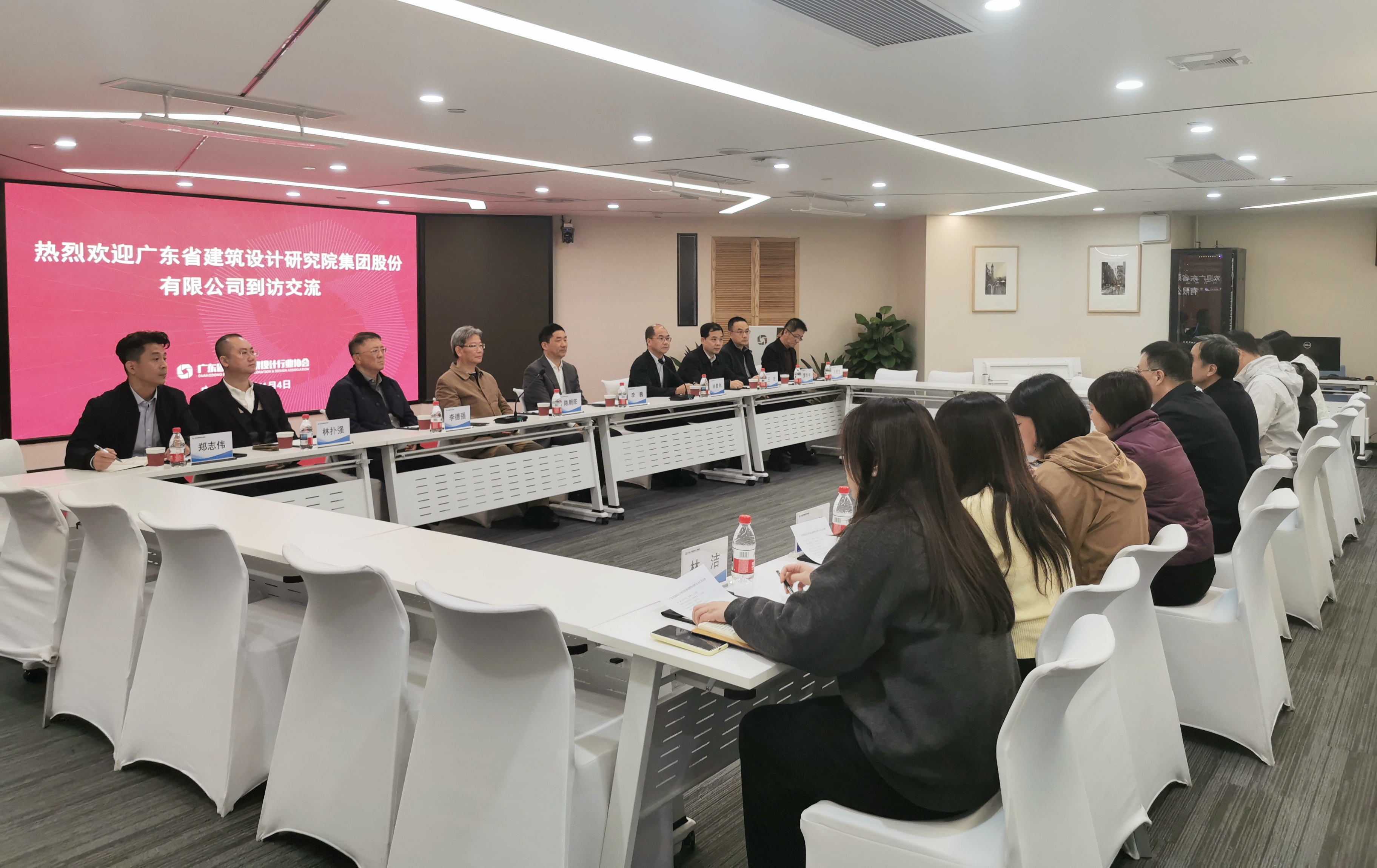 2026年1月4日,我會會長單位廣東省建筑設計研究院集團股份有限公司(以下簡稱省建院)黨委書記、董事長、總經(jīng)理李巍攜同黨委副書記、副董事長鐘青林等一行9人到訪我會,我會會長曾憲川,副會長孫立德,黨支部書記兼副秘書長羅振城,常務副秘書長農米,副秘書長潘雁娟、肖建鳴以及協(xié)會各部門負責人參加了座談。雙方圍繞行業(yè)發(fā)展、協(xié)會建設、合作共贏等議題深入交流,共話行業(yè)未來發(fā)展新路徑。